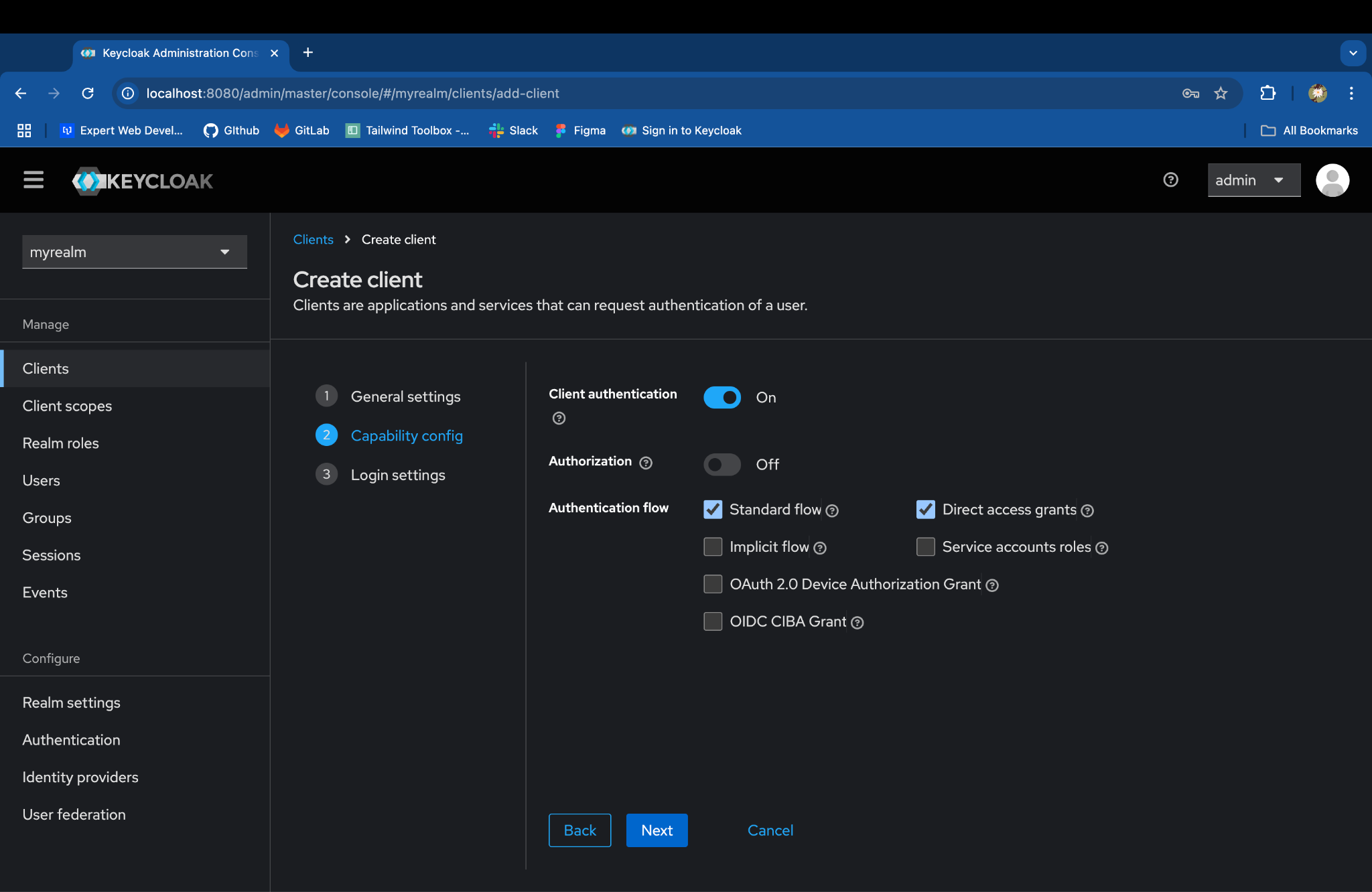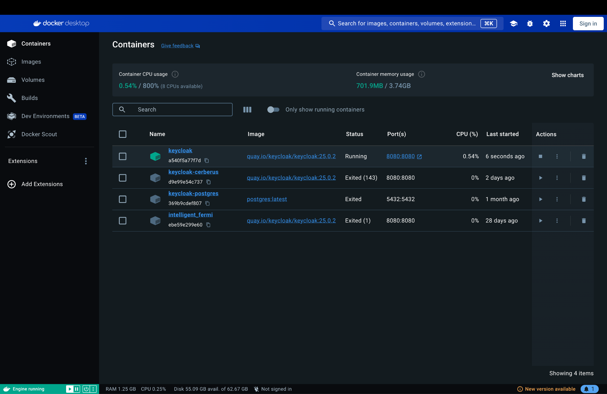 First, set up Keycloak on Docker by following the official Keycloak Docker guide
