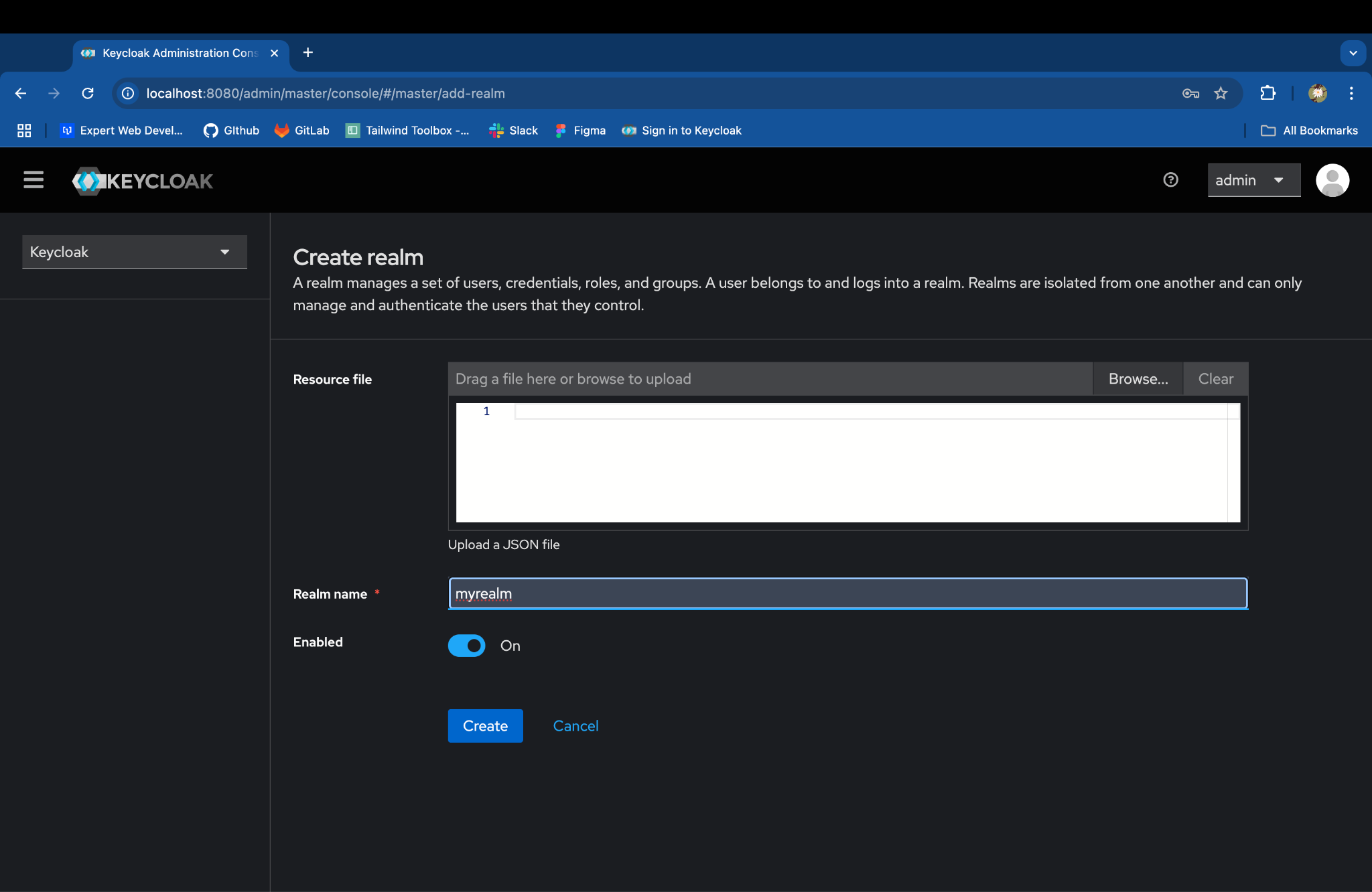 - Click on Create Realm