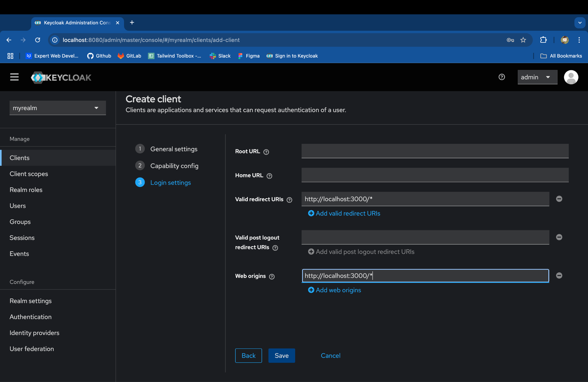 Set the Web origins:- http://localhost:3000/\*