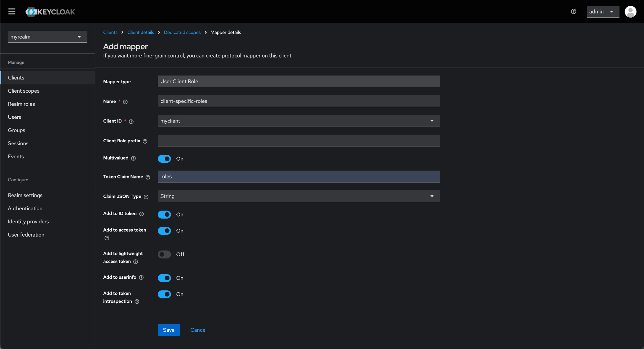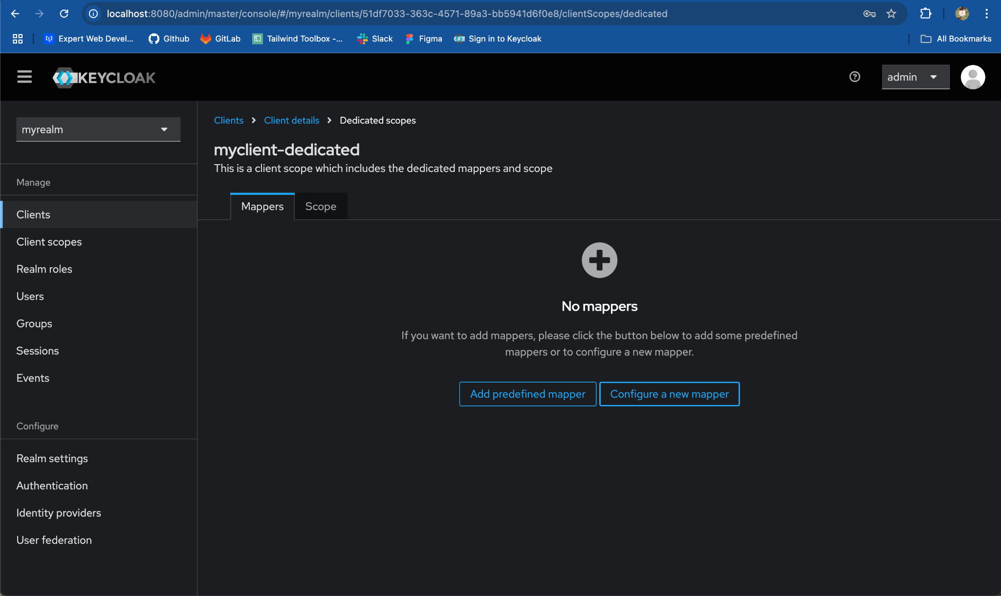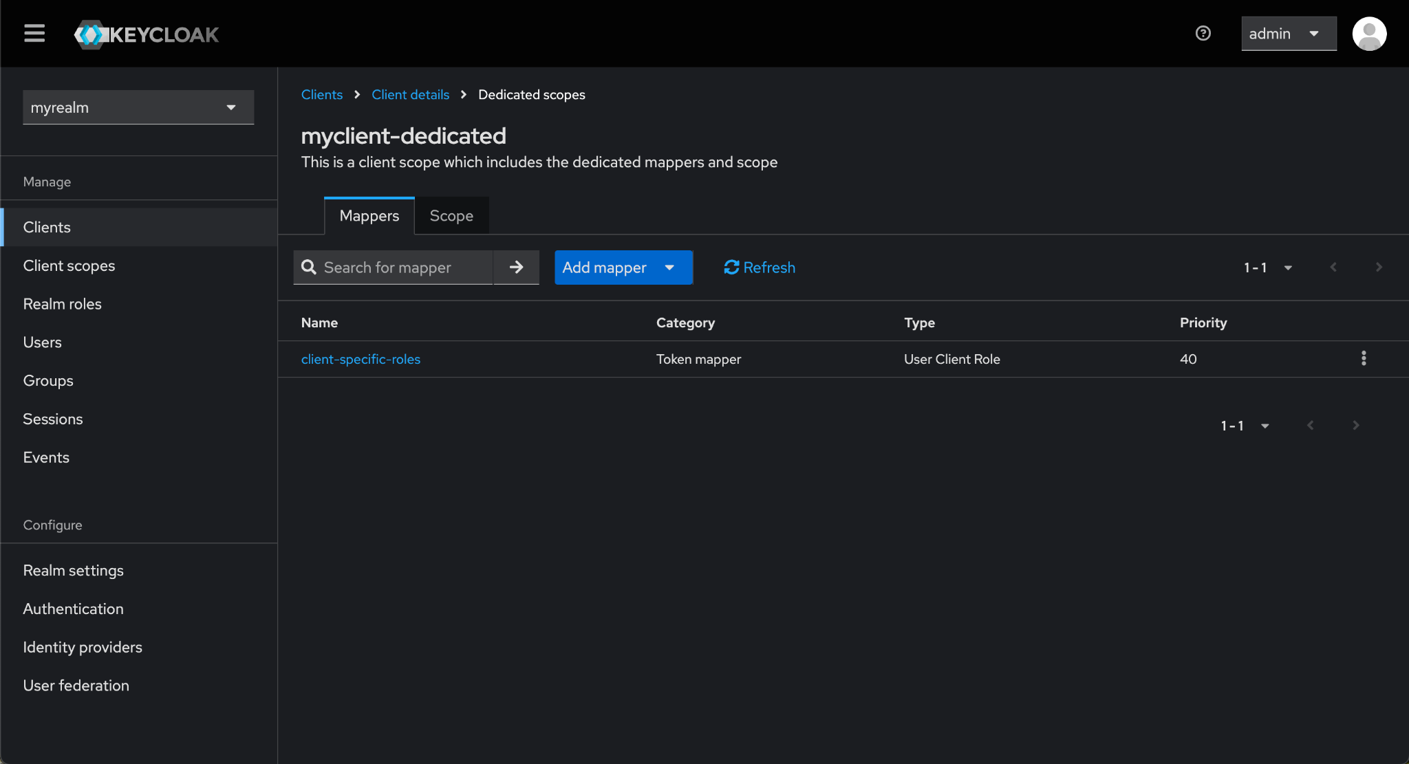 Under Assigned client scope column, click on myclient-dedicated.