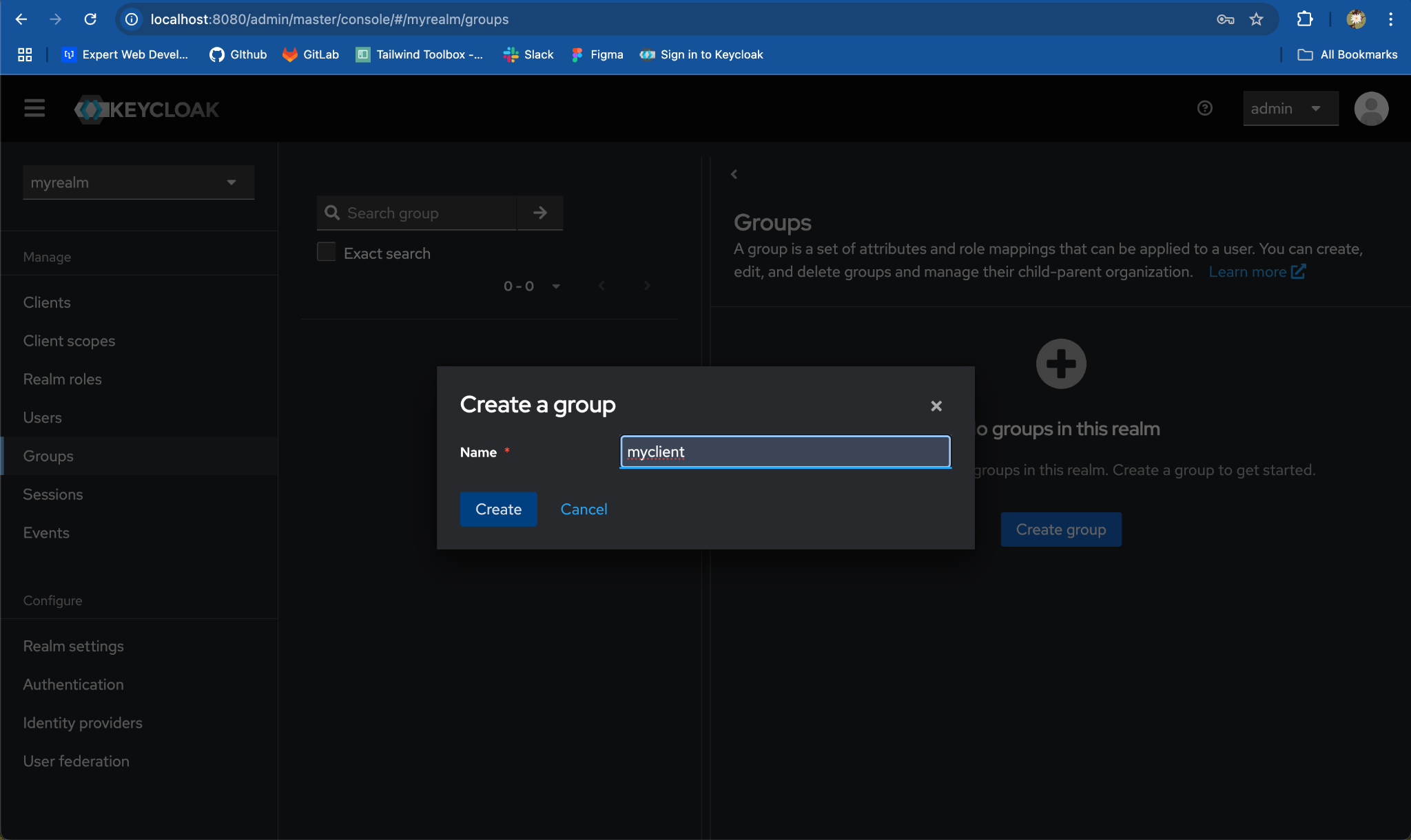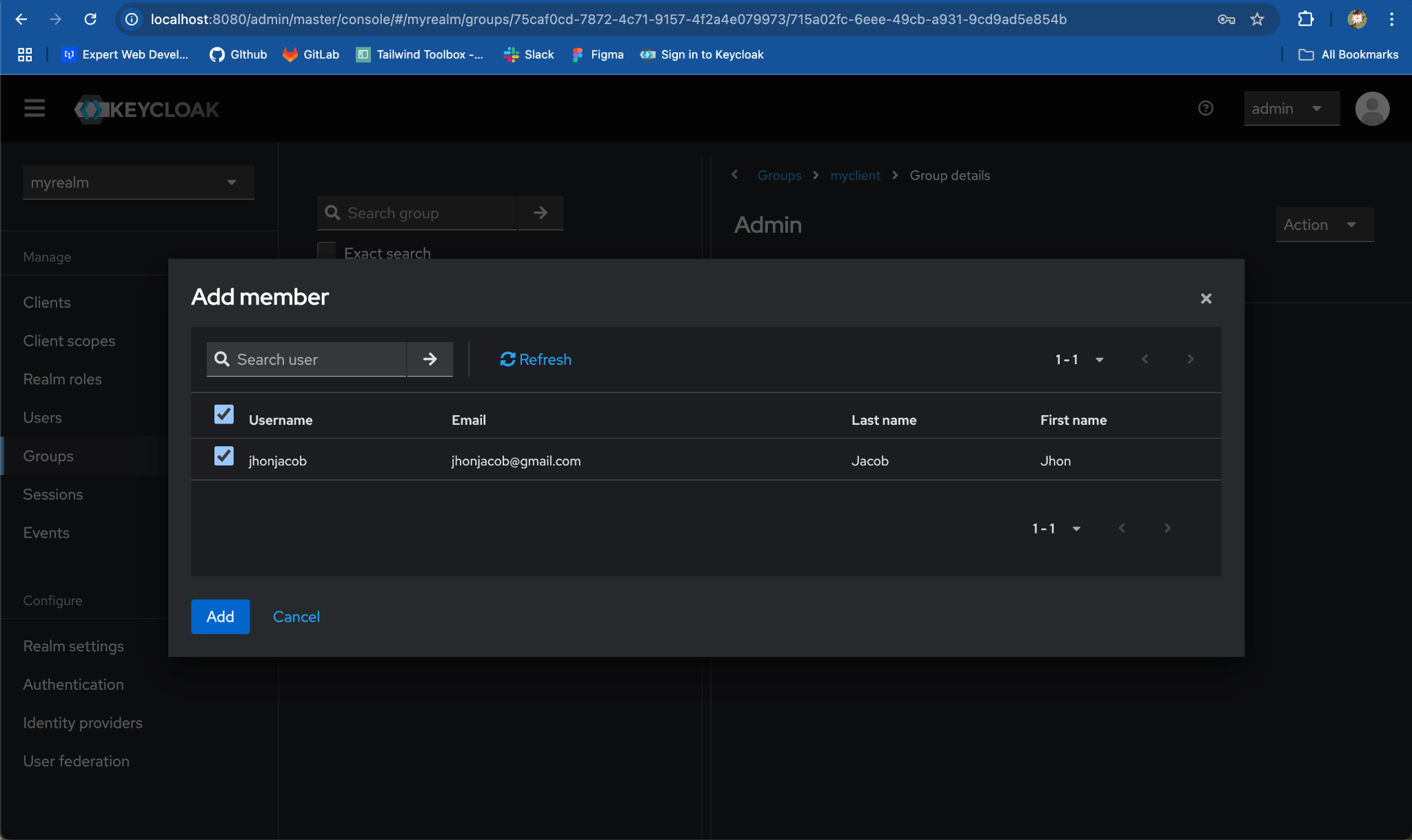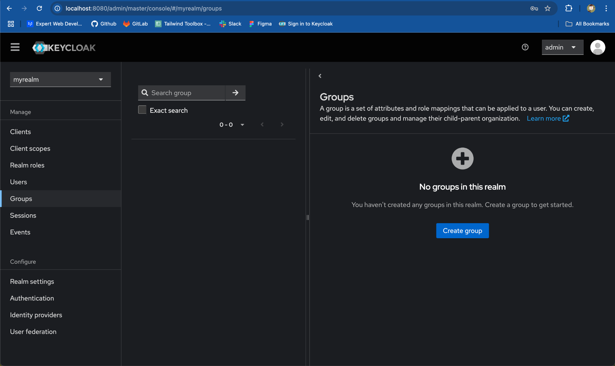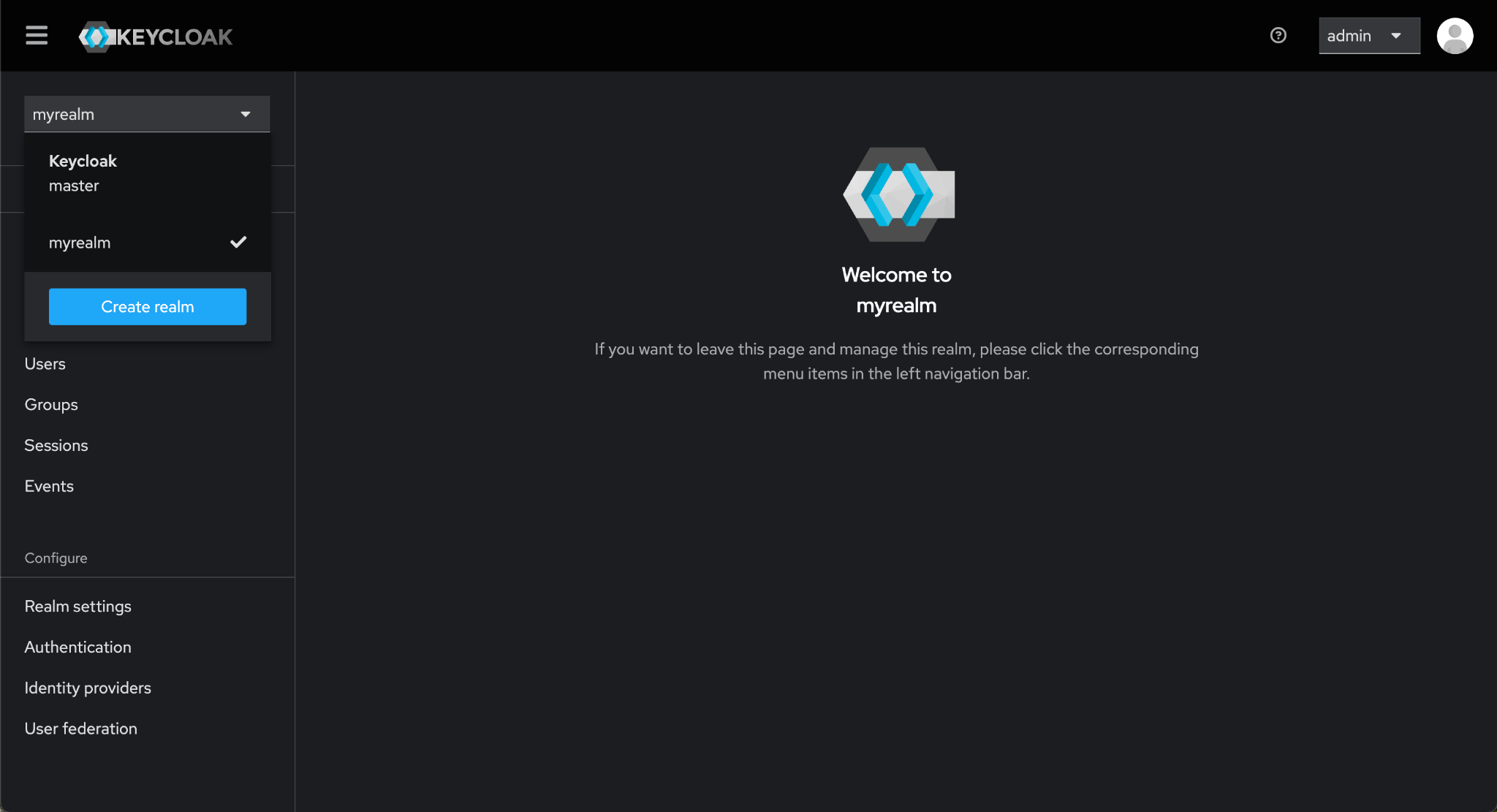 myrealmfrom the list of realms.