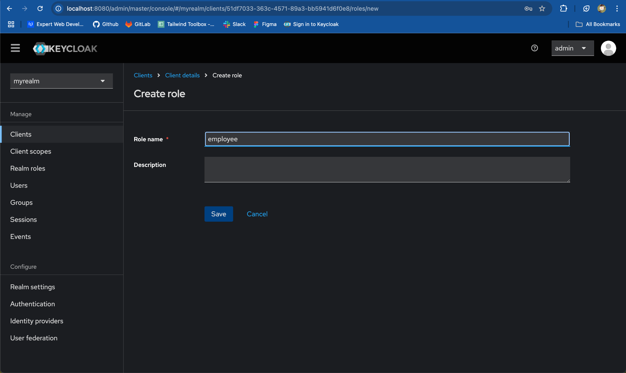 Role Name, enteremployee. ClickSave.
