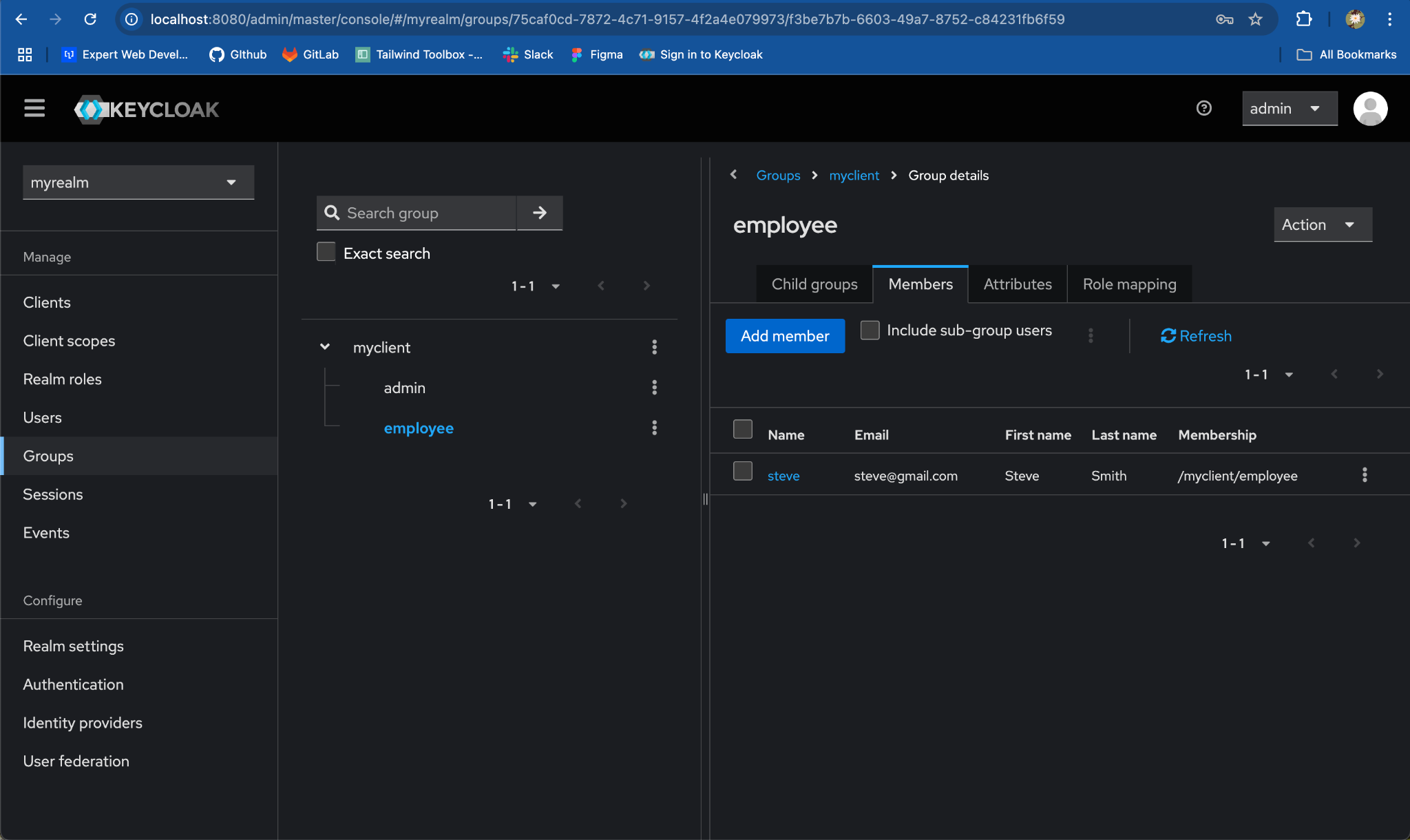Child Groupstab, clickCreate groupand add the group name same as client role, e.g.employee. ClickSave.