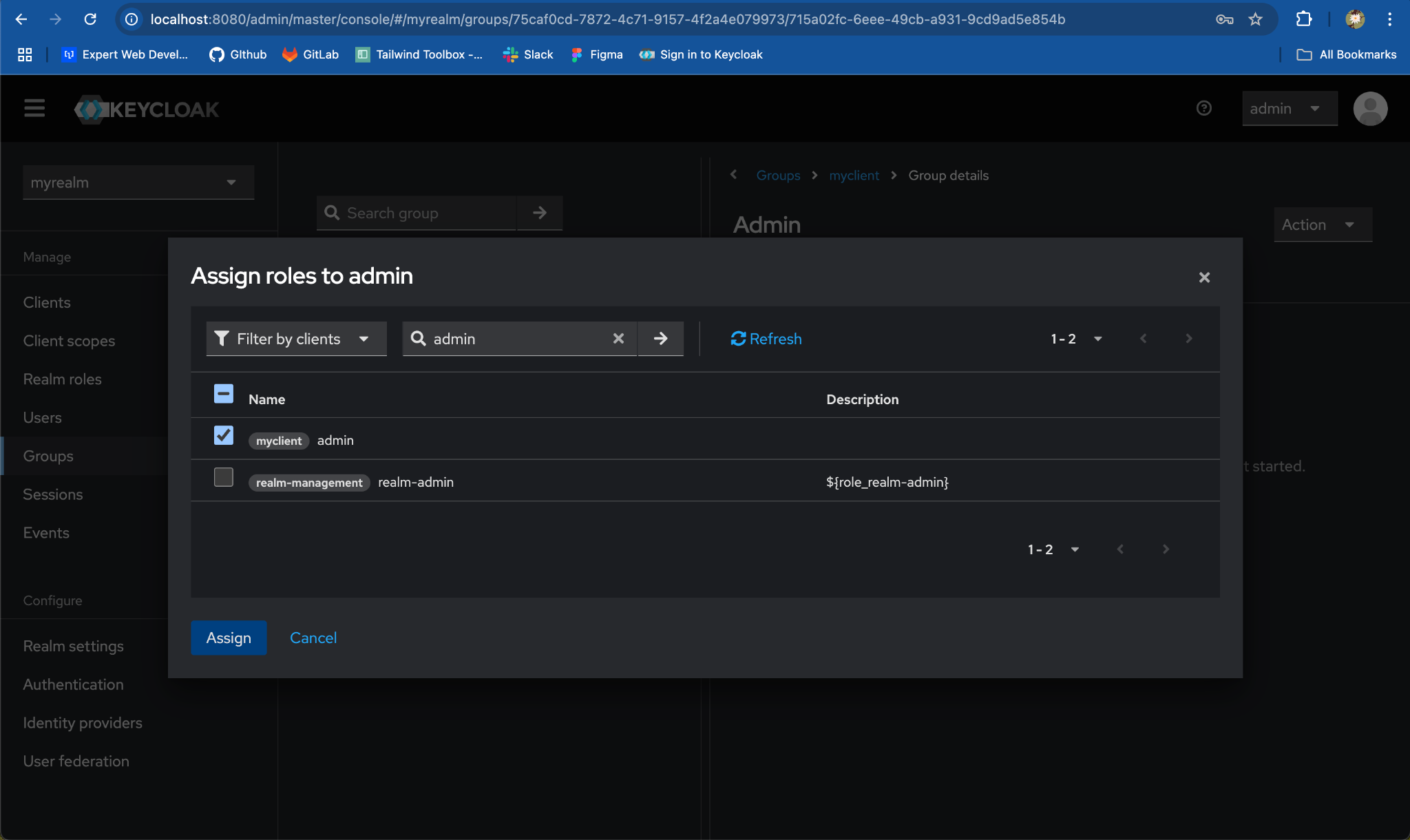 adminrole which belongs tomyclientby selecting the checkbox and click onAssign